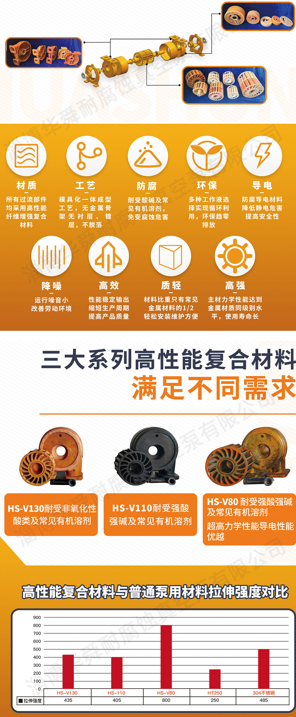 淄博華舜耐腐蝕真空泵有限公司生產耐腐蝕泵,耐腐蝕真空泵,玻璃鋼真空泵,廠家供應,型號齊全,耐腐蝕范圍廣、無襯層不脫落、節能效率高、運行可靠、環保節水、 體積小、重量輕、使用壽命長