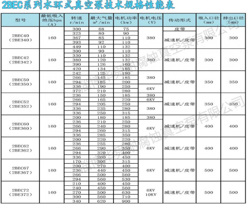 2BE系列水環(huán)真空系及壓縮機(jī),是我公司在多年科研成果和生產(chǎn)經(jīng)驗(yàn)的基礎(chǔ)上,結(jié)合國際同類產(chǎn)品先進(jìn)技術(shù),研制開發(fā)的高效節(jié)能產(chǎn)品,通常用于抽吸不含固體顆粒,不溶于水,無腐蝕性的氣體,以便在密閉容器中形成真空和壓力。通過改變結(jié)構(gòu)材料,亦可用于抽吸腐蝕氣體或腐蝕性液體做工作液。廣泛用于造紙、化工、石化、輕工、制藥、食品、冶金、建材、電韻、煤暖、金屬礦山、化等行業(yè)。本系列泵采用單級單作用的結(jié)構(gòu)形式,具有結(jié)構(gòu)簡單,維修方便,運(yùn)行可,高效節(jié)能的優(yōu)點(diǎn),并能適應(yīng)排水量大,載荷沖擊波動(dòng)等惡劣工況。我們對關(guān)鍵部件,如分配板,葉輪和系軸進(jìn)行了系列優(yōu)化設(shè)計(jì),簡化了結(jié)構(gòu),提高了性能,實(shí)現(xiàn)節(jié)能。采用球墨鑄鐵或焊接葉輪,葉片一次沖壓成形,型線合理:輪轂全部加工,從根本上解決了動(dòng)平衡問題。葉輪與系軸采用熱裝過盈配合,性能可靠,運(yùn)行平穩(wěn)。葉輪焊接后,整體進(jìn)行熱處理,使葉片具有良好的韌性,葉片的抗沖擊,抗折彎能力得以根本保證,能適應(yīng)載荷沖擊波動(dòng)等惡劣工況。2BE系列泵,自帶氣水分離器,多位置設(shè)有排氣口,泵設(shè)有排氣檢修口,葉輪與分配板間通過定位軸承兩娉壓益調(diào)整,安裝使用方便,操作簡單,便于維修。